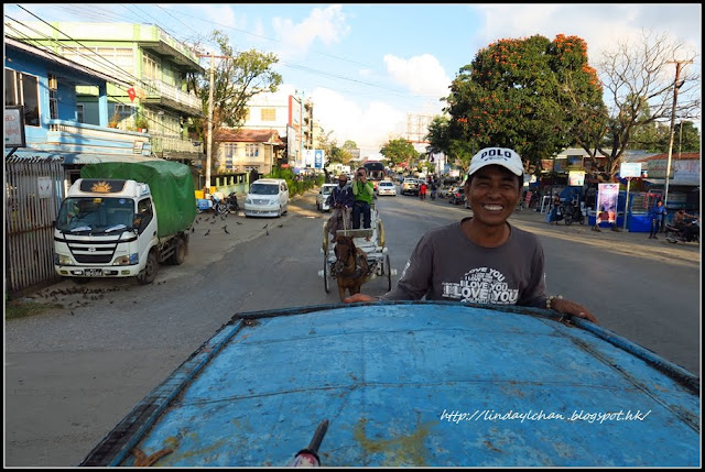 富有的黑Guide,為了讓我們體驗山區的一切,今早安排了遊船河,這是額外的行程,但沒有要求我們加團費。他又自掏腰包請我們坐彬烏倫市的英式馬車,到市集又送我們禮物,緬甸特式生果、食品任食。富有的公主也送我們緬甸的特式筒裙(Longyi),我們已經感激不盡。