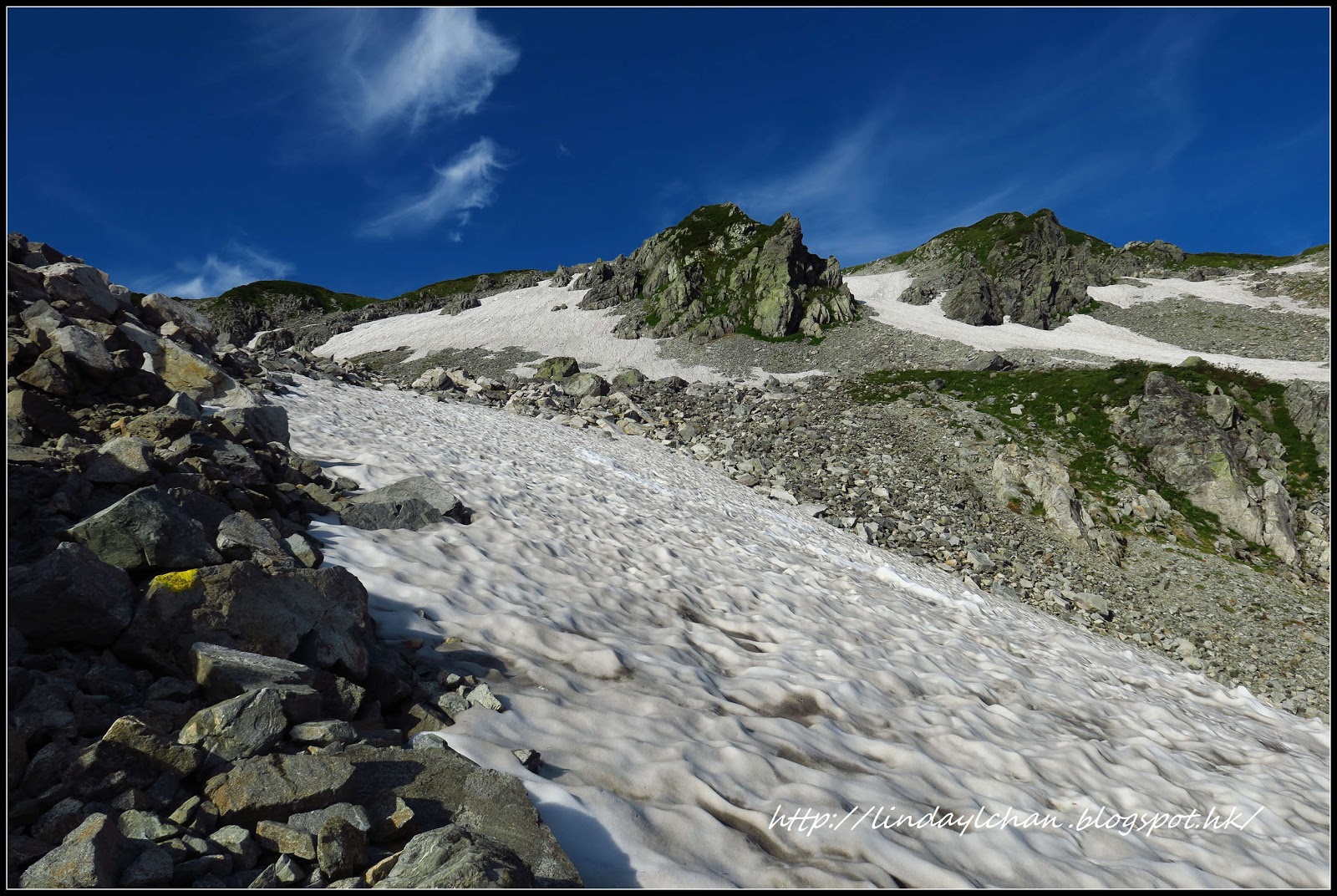昨天登上劍岳,除了見識了「蟹之縱行」及「蟹之橫行」,更不停在陡坡碎石上攀下降,完全是膽量的考驗,不過,大家順利完成了,喜悅之情難以形容,謝謝給我們晴朗的天氣。